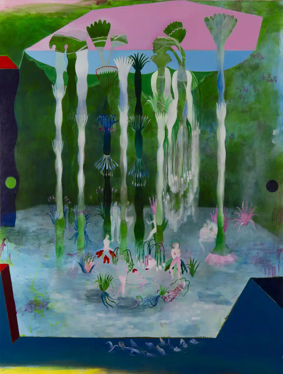Helene Duclos - adagp -2025 - Dans le reflet de l'eau de rose - huile sur toile - 46 x 55 cm