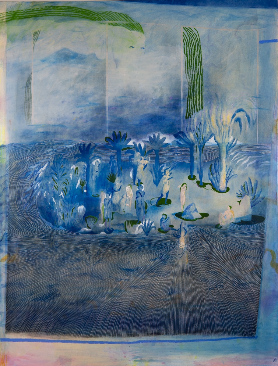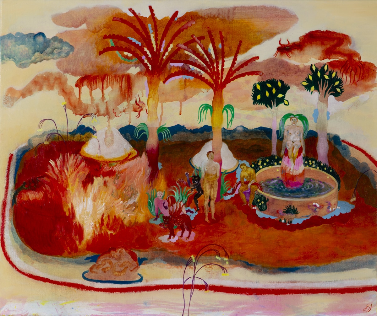 Cette nouvelle série de peintures explore des paysages oniriques où l’eau et le feu cohabitent, se répondent, parfois s’affrontent.